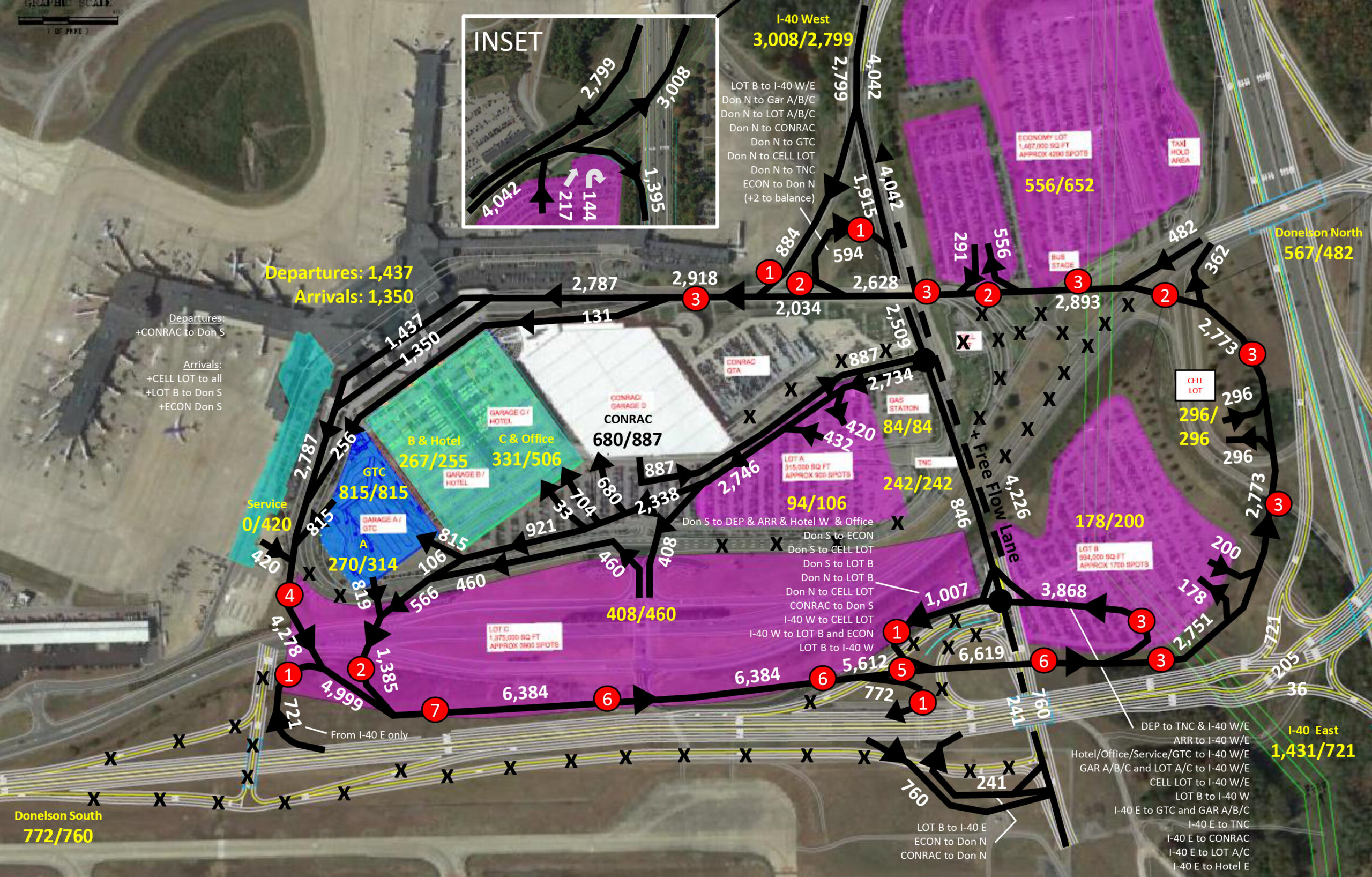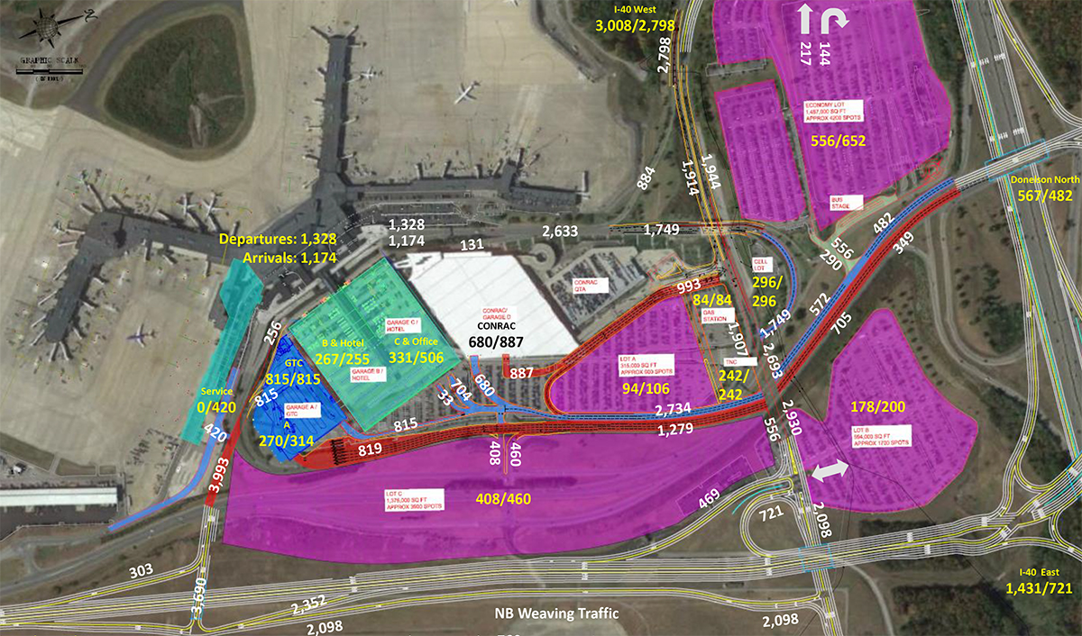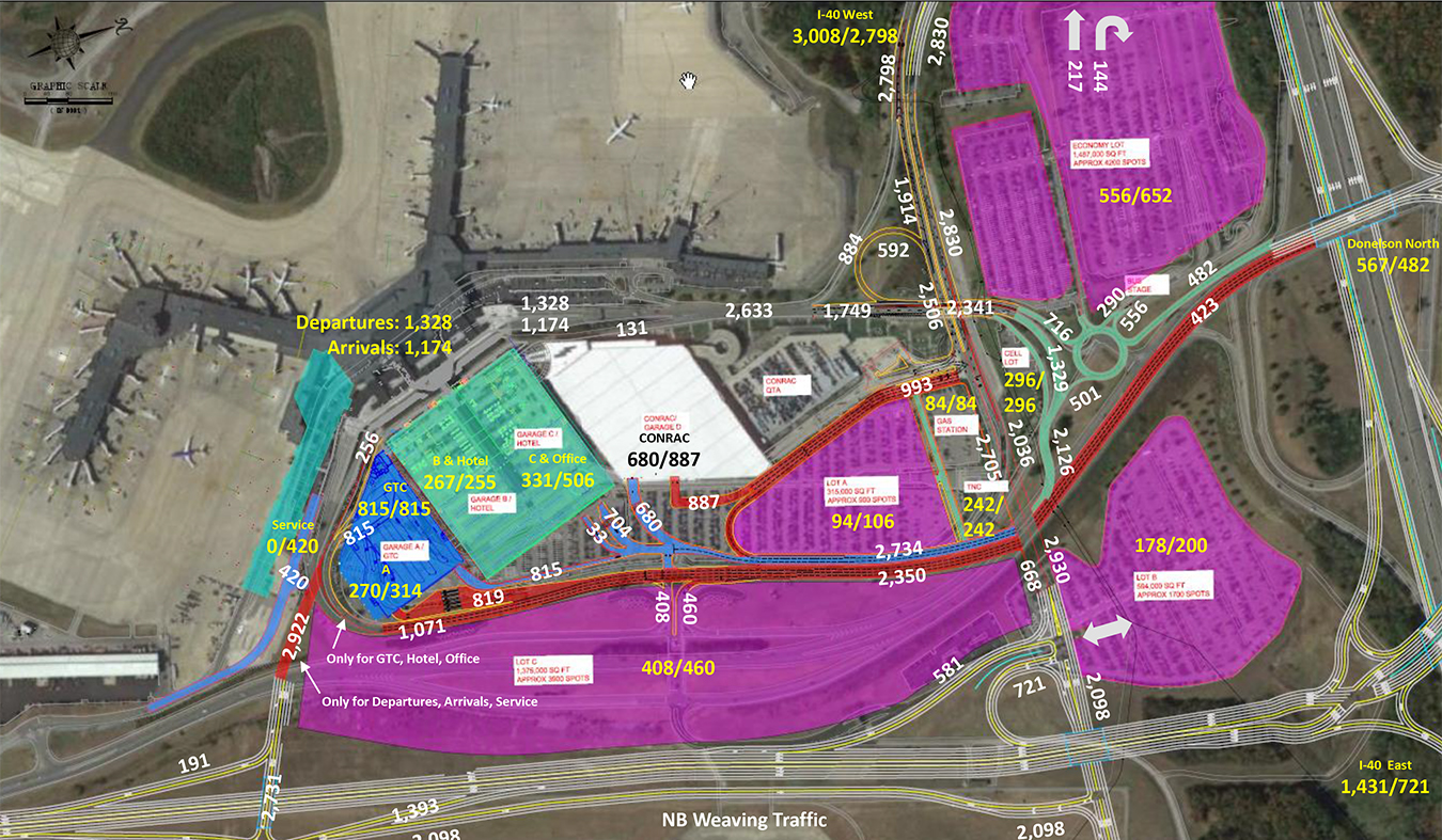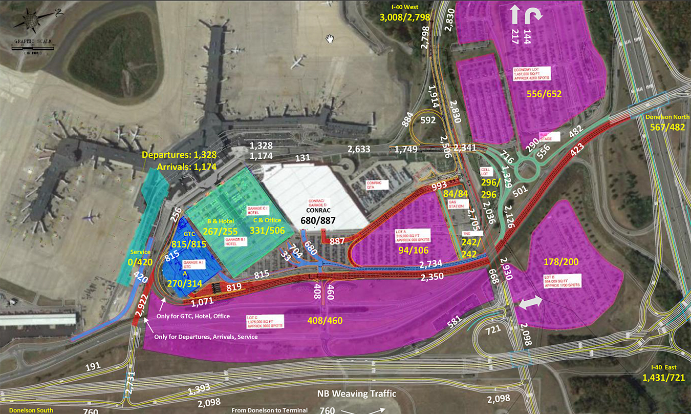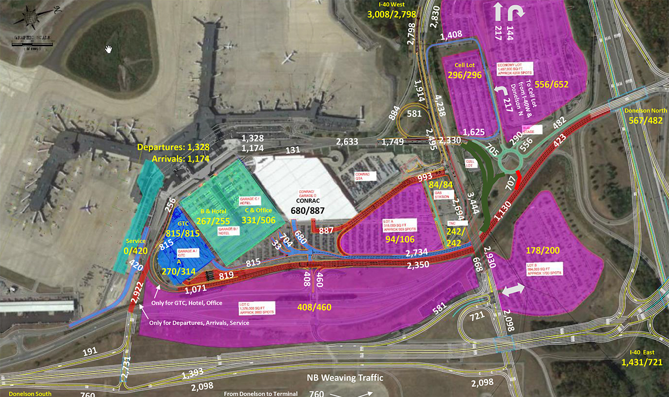 Connico provided rough order of magnitude (ROM) cost estimating and scheduling/phasing services for the project for the Tennessee Department of Transportation (TDOT). TDOT intends to relocate Donelson Pike to account for expansion at BNA by 2023. This relocation will require the Metropolitan Nashville Airport Authority (MNAA) to also make changes to their internal roadway system. This project prepared a preliminary design of these MNAA changes along with a ROM cost estimate. Elements of the project included bridge modifications to Taxiway J and Taxiway L, construction of a seven-lane bridge over traffic on the exterior roadways, construction of a two-lane bridge over traffic on exterior roadways, modifications to a five-lane bridge over traffic on exterior roadways, and roadway pavement demolitions.