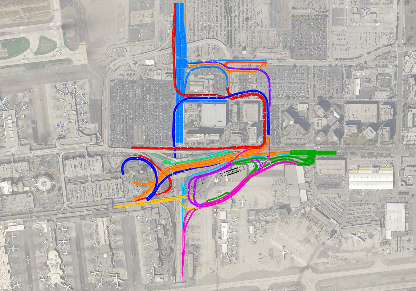 Connico also provided cost estimating and constructability analysis for the landside roadways concept which included two concepts for the new roadway access into Terminal 9, including the LAX Central Terminal Area (CTA).  Connico assisted in the development of the refinements to the concepts which included the United Concept and the Braid Concept.